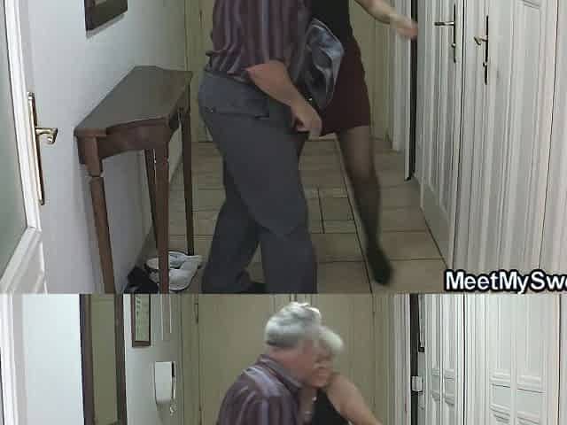 Old pair bang with youthful brunette hair son