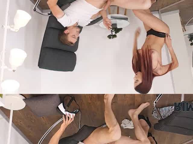 RIM4K. Slim redhead distracts BF from VR by shoving tongue into his ass