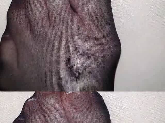 Black nylon stocking on wifes French toenails covered in detail by a big load of cum