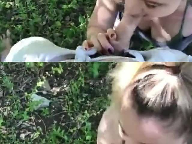Hairy daughter with big boobs loves her daddy in the woods