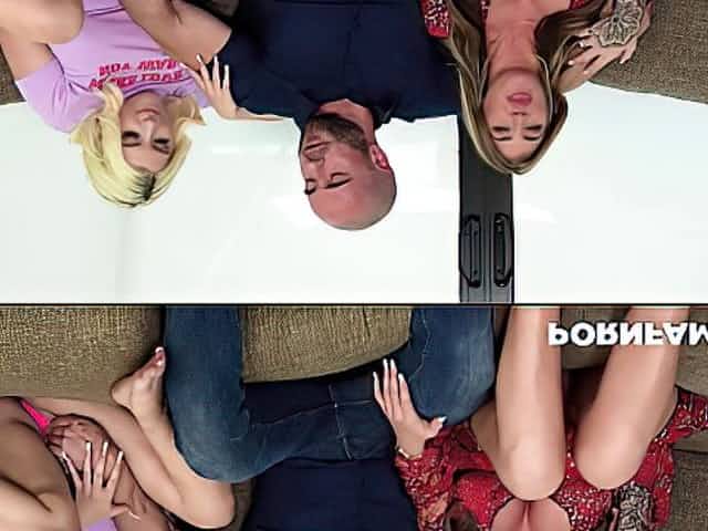 Threesome family sex with Step Daughters Moka Mora &_ Audrey Royal With Step Dad POV