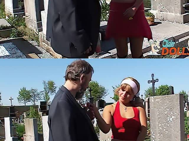 Old pervert Pavel Terrier seduces and fucks young lady Eli outdoors by a cemetery