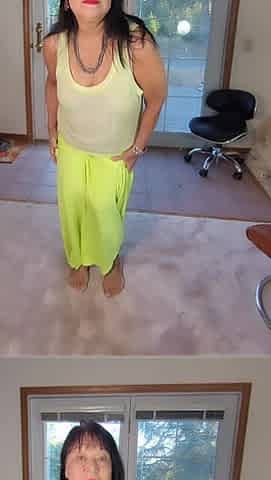 Sexy wife dancing in shorts and wedged pants