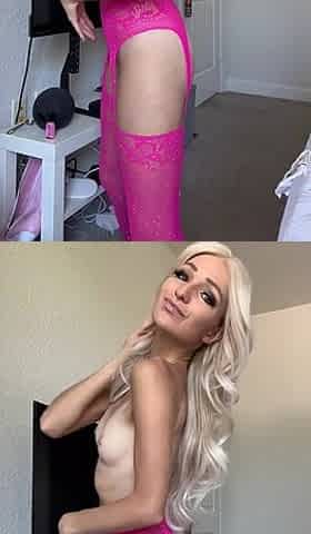 Sexy Fit Skinny Blonde Dances in Thigh Highs and Garter