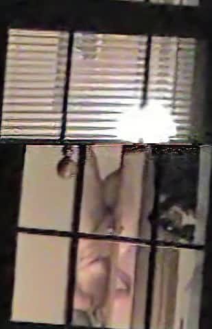 Naked bimbo is dancing and getting spied thru window