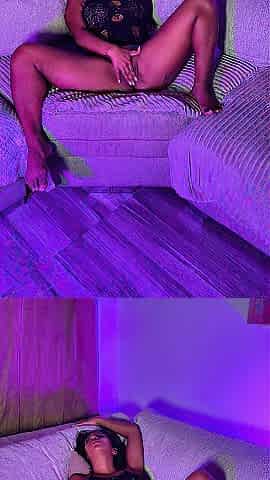 Cici Rose is 18 and has long, pretty black hair. She's showing off her diddling skills on the couch.