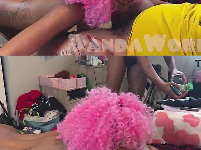 4 Ebony Gal Ass Widen, Black Pink Hair Sucks Her two BFs BBCs!