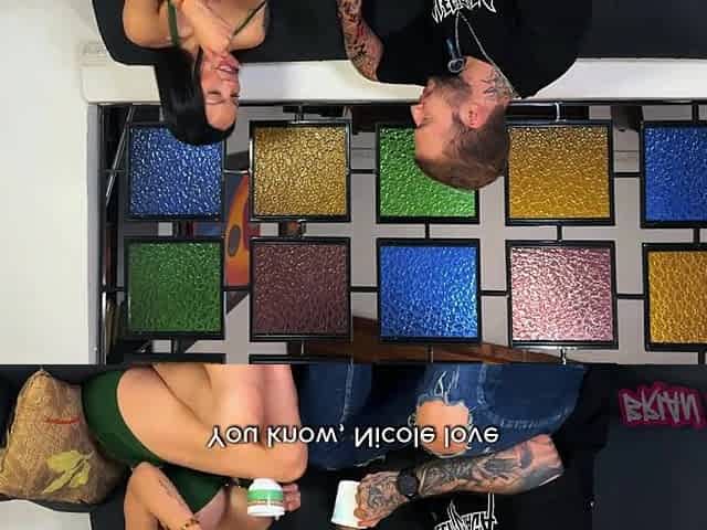 Bimbo doll Nicol Love drinks hawt coffee with Brian Evansx