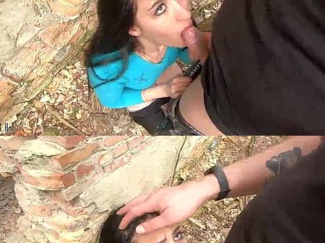 Backyard Blowjob and Swallowing Mouthful of Cum