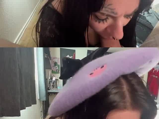 Milk Soaked Deep Throat With Big Titted Dark Haired Blowjobs And Hefty Boobs!