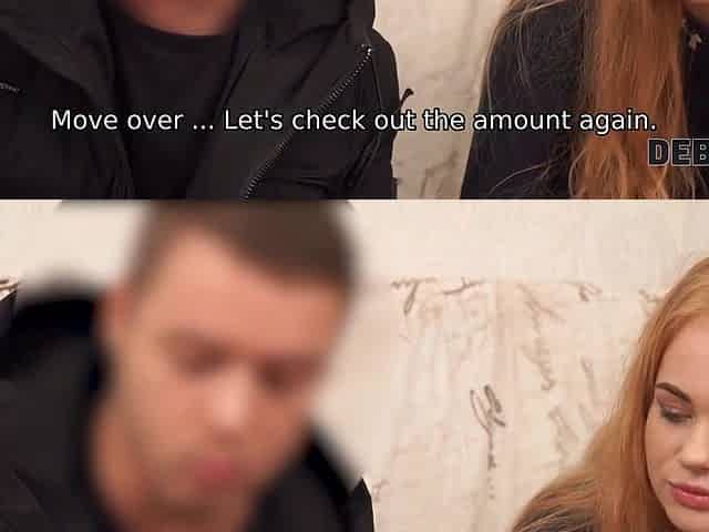 DEBT4k. Excited debt collector gives honey cash in swap for vagina