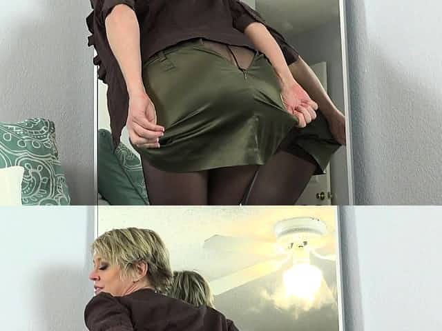 Busty mature Dee Williams rubs her pussy in bedroom