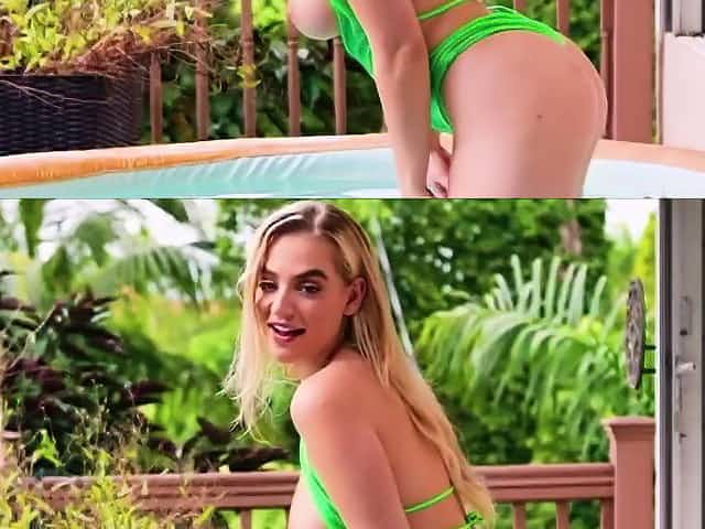 Platinum-Blonde teenager, Brandy is deepthroating her married neighbor's lollipop and getting it up her booty