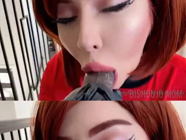 Otaku redhead going wild deepthroating her big dildo so bad