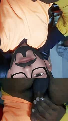 "Black and white hand job with cum "