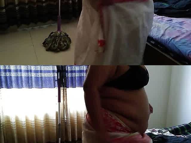 "Desi maid left while sweeping"