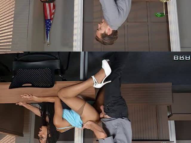 Talia Amanda as Secretary in sexy lingerie put Huge boobs on Desk