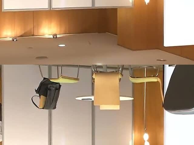 Japanese co worker caughts looking under desk