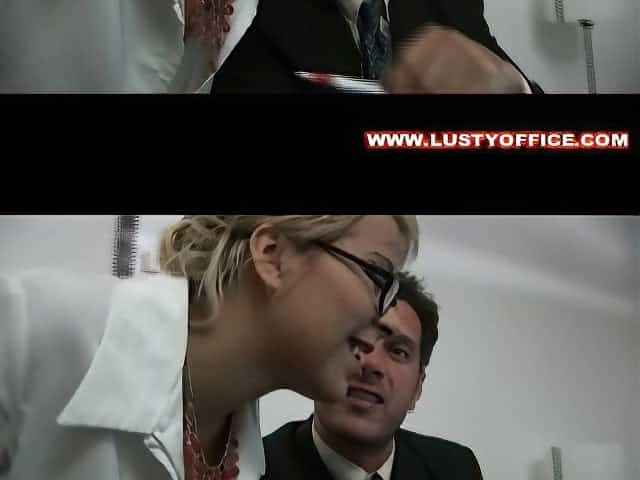 Stealing housewife banged on the office desk