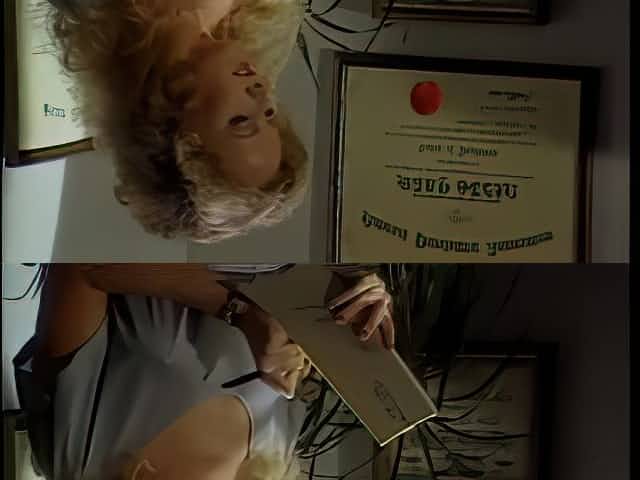 Mature blonde Nina Hartley bent over the desk and fucked in stockings