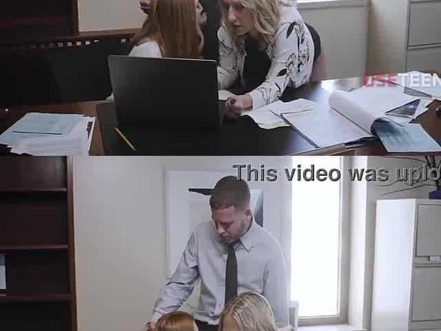 Hardcore kantoor orgie met geile secretaresse die triple anal neemt op het bureau van haar baas