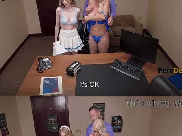 Coed n teacher sharing bosses penis on his office desk