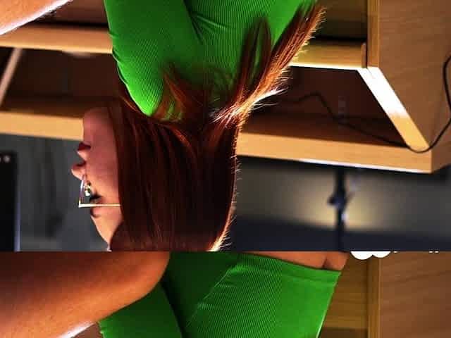 Nathaly Cherie is clearly not focused on working at her desk