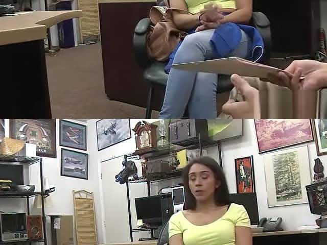 Desperate teen Jessi bangs pawn managers big cock for revenge