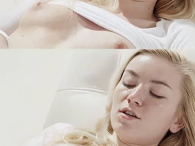 Blonde Diana masturbates until climax with a big dildo