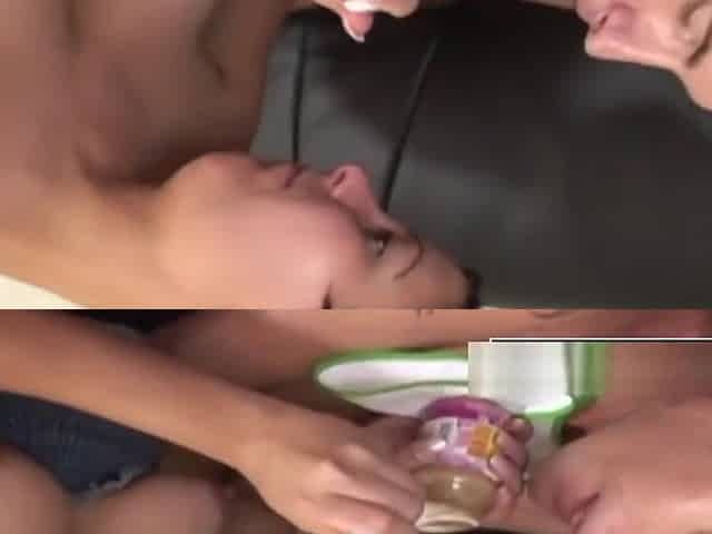 Cute babes in diaper dildo fucking ass and cunt after messy muff diving