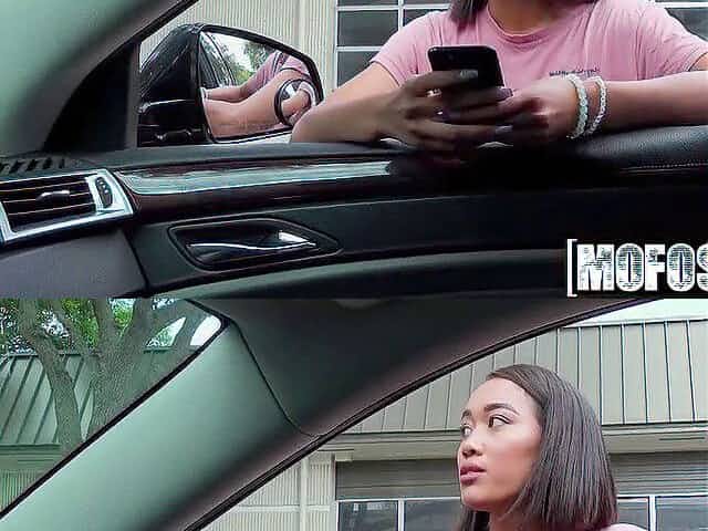 Public Agent Asian MILF barmaid flashes her cute mom boobs