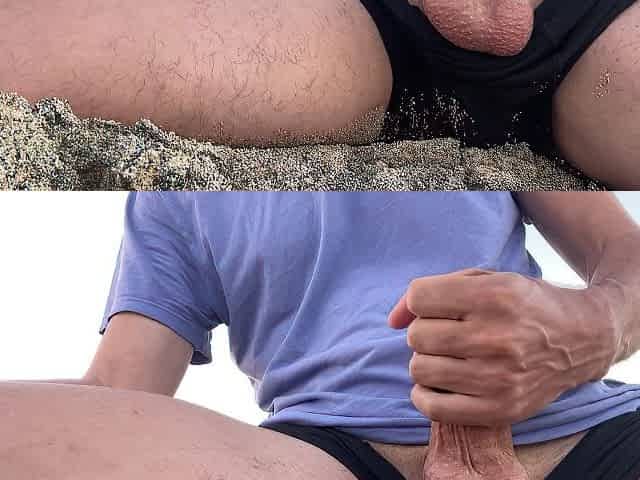 Skinny Guy With a Big Dick meets Sunrise on a Beach. Solo male Masturbation with Cumshot on Sand.