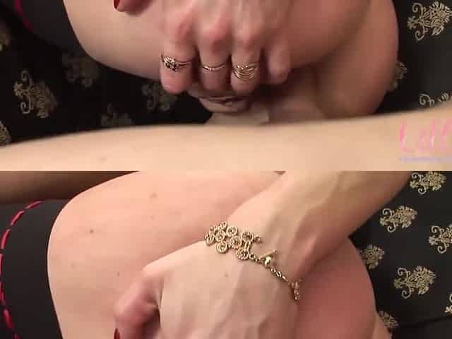 Sexy redhead white sweetie with juicy ass in red lacy panties masturbates