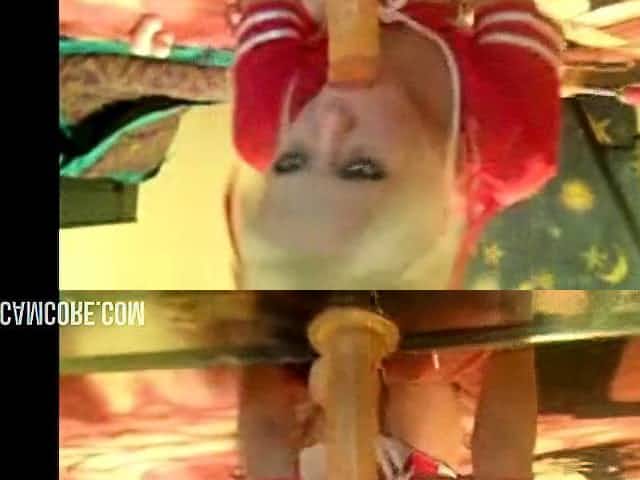 Girl fucked by dildo machine, POV webcam