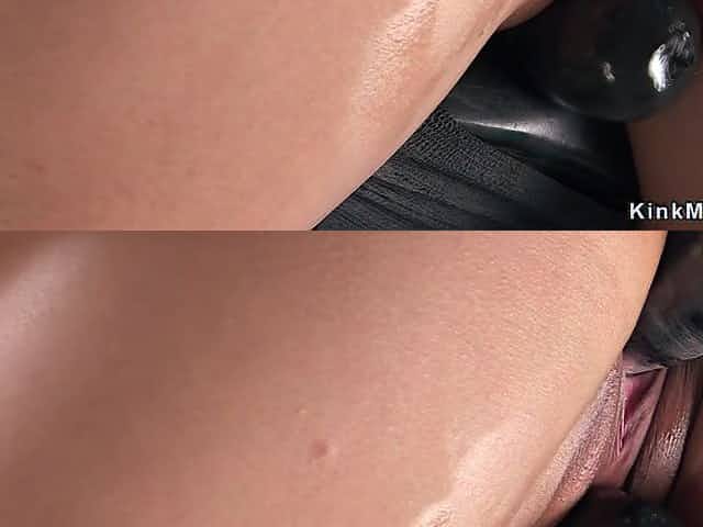 Petite babe oiled ass and fucked machine