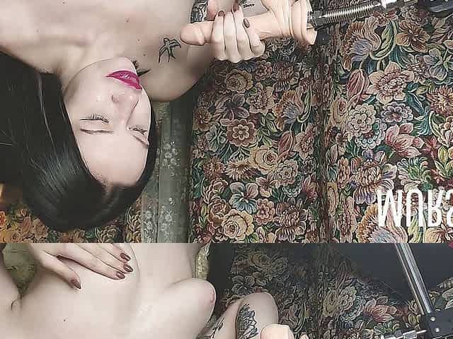 Going on with fucking machine and dildo deepthroat
