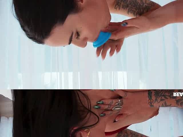 Ameena Green and May Hashira play with the pink dildo