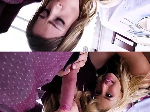 Horny blonde gets fucked by stud after dinner