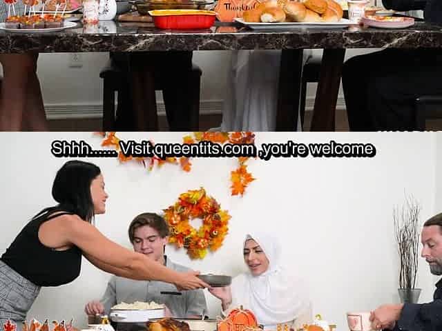 Fucking my hijab girlfriend during family dinner