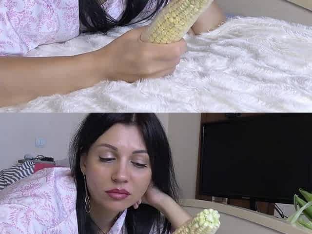 The Brown-eyed Brunette Decided to Treat Her Pussy with an Ear of Corn. What Came of It, See for Yourself.