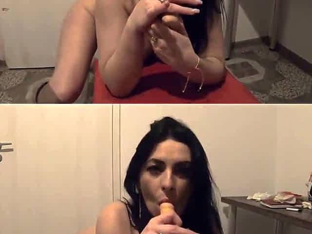 Dirty girl loves spreading and jumping on a gigantic meaty