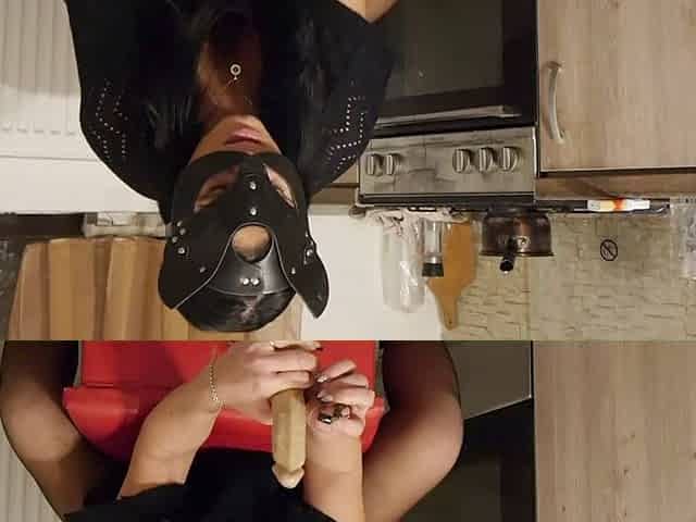 Iris Kiss Kiss gets down and dirty with a long cucumber in the kitchen