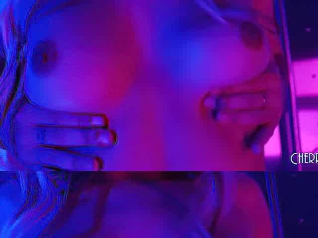 A super sexy blonde with big boobs and masturbating with a v