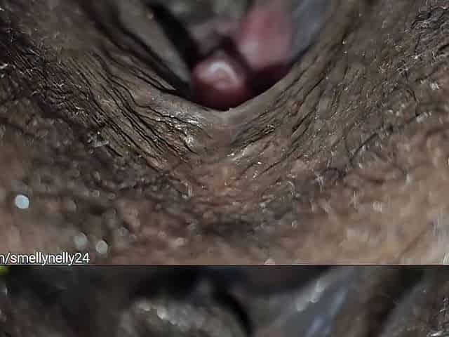 Shaggy aged snatch cums close-up. ASMR.