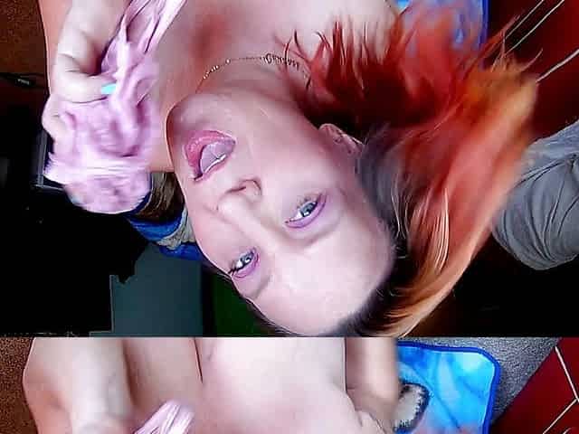 A blond shows u her recent pants and moist cunt! Lots of bawdy talking!