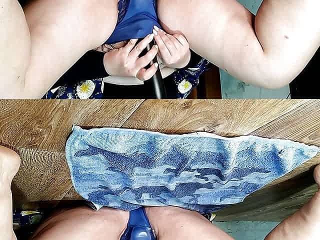 Endless stream of piss through dirty MILF panties rear view