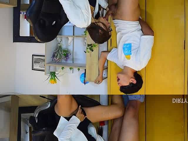 Humping in trio with the sultry mom Asian shrink