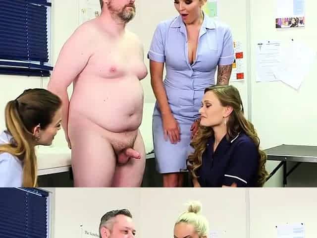Naughty doctor CFNM sluts giving handjob