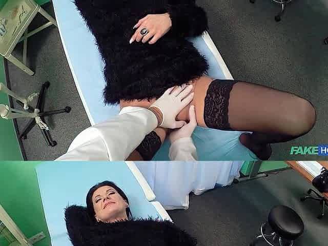 Violet Ray rubs her pussy in front of the doctor