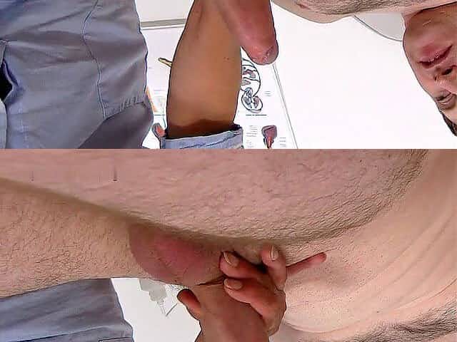 The patient CUM powerfully during the scrutiny procedure in the doctor's hands